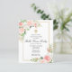 As rosas cor-de-rosa e as flores brancas brilhantes da hydrangea são aninhadas em folhas verdes macios para criar arranjos florais elegantes que decoram uma espumante estrutura de ouro que envolve os detalhes do seu Chá de panela. Este item é parte da Coleção de Primeira Comunhão Blush Pink e White Floral.