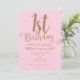 1º ANIVERSÁRIO 1 Convites de Festa Rosa e Dourado. Personalize para qualquer evento.