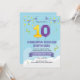 Torne inesquecível o aniversário de 10 anos do seu filho com este animado e colorido convite de aniversário! Projetado com números divertidos de balões, confete festivo e elementos de nuvem macia, este convite é perfeito para uma atmosfera de festa alegre. Principais recursos: balões numéricos brilhantes e negros fundo azul-céu com confete e galerias Personalizáveis com nome, data e local de festa Perfeito para rapazes ou raparigas que fazem dez Ideal para festas em Bella Gardens ou qualquer outro local