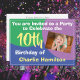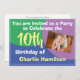 convite para uma festa de aniversário especial com nome e número de anos. Convite de festas para uma criança de 10 anos. Adicione a sua própria foto e redimensione-a. 10ª convites de festas de aniversários. Crédito Fotográfico: Fotografia © Storytree Studios, Stanford. CA.