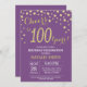 100º Convite de Aniversário com Fundo de Diamante Puro e Dourado Glitter. Dourado Confetti. Aniversário Adulto. Homens ou Mulheres Aniversário. Para mais personalização, clique no botão "Personalizar" e use a ferramenta design para modificar este modelo.