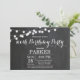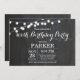 100º Convite de Aniversário com Fundo do Quadro de Contorno das Luzes das Cordas. 13 15 16º 18º 18º 21rua 30 40º 50º 60º 70 80 100º, qualquer idade. Para mais personalização, clique no botão "Personalizar" e use nossa ferramenta de design para modificar este modelo.