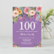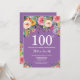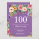 Roxo Floral 100º Convite de Aniversário para Mulheres. Flor Floral de Água. Fundo de Violet Lavanda Lilac Roxo. Rosa, Amarelo, Laranja, Flor Roxo. Aniversário Adulto. 13 15 16º 18º 20 21 rua 30 40º 50º 80 de 60º 70 de 100º, qualquer idade. Para mais personalização, clique no botão "Personalizar" e use a ferramenta design para modificar este modelo.