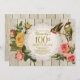 100º convite de aniversário para mulheres. Os rosa florais elegantes, as aves, o local, o fundo oleoso e o fundo de madeira dão a este convite um talo antigo. Perfeito para festa de aniversário de mãe. O texto é totalmente editável, para que você possa personalizar o cartão, alterar a idade ou a redação para se adequar ao seu evento!