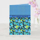 Um cartão de aniversário chic 100º, com um padrão de Bolinhas que não combinam, agrupado com um padrão de luas azuis peculiar em Neon Green, Turquoise e Emerald Green em um fundo preto. Parte do intervalo 'Luas Azuis' de Posh & Painterly.