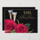 As rosas vermelhas e os copos de Champagne elegantes projetam 100th convites da celebração do aniversário. Personalize nome, data e todos os detalhes de seus convites. Cartões de harmonização, selos postais e outros produtos disponíveis no aniversário/categoria dos convites de festas de aniversários de nossa loja.