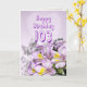 Um cartão de aniversário delicioso para uma mulher com um buquê enorme das flores.