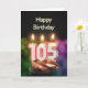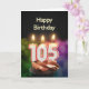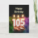 Um bolo de aniversário com velas. As velas são compostas pelo número 105, para um aniversário de 105 anos. Um cartão de aniversário adequado para todos.