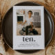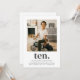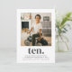 Um convite moderno de 10 de aniversário, com a sua própria fotografia e a palavra "dez" por baixo. Você também pode editar todas as cores e estilos do texto - basta clicar no botão 'Personalizar' -> 'Editar usando a ferramenta design'.