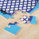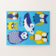 Corujas bonitas, malucas e brincalhonas em tons de azul, amarelo, preto e branco sobre um fundo azul vívido. quebra-cabeça de excelente para crianças jovens aprendendo a viver com a forma mais comum de cegueira das cores. Com essa quebra-cabeça, eles podem praticar desenvolvendo habilidades perspicazes de reconhecer forma e padrão, enquanto não se sentem em desvantagem.