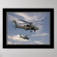 Um impressão de 11x14 de dois helicópteros militares do exército que voam através de um céu azul