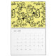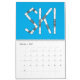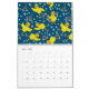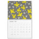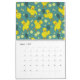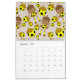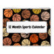 Um calendário de 12 meses mostrando snowboard, esqui, basquetebol, baseball, golfe, andando de bicicleta, natação, tênis, futebol, patinagem no gelo e futebol com alguns pintinhos e loucos jogados.