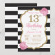 Convite de aniversário de 13. Preto rosa e Dourado. Dourada Glitter. Black and White Stripes. Flor Floral Rosa. Aniversário de criança. Festa de aniversário de adolescentes. Para mais personalização, clique no botão "Personalizar" e use nossa ferramenta de design para modificar este modelo.