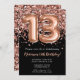 13 Aniversário Convite de Rosa Negro Glitter Doura