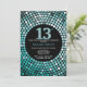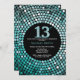 Convite de Aniversário de 13. Negra e Teal Glitter. Teal Diamond.Festa de aniversário para crianças. Para a festa de bash do Boy ou Girl Bday.