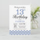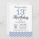 Convite de aniversário de 13 com Blue Chevron. Preto e Branco. Aniversário de criança. Convidar Menino ou Menina. Para mais personalização, clique no botão "Personalizar" e use nossa ferramenta de design para modificar este modelo.