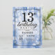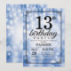 Convite de aniversário de 13 com luzes de cordas azuis com fundo brilhante azul. Aniversário Azul. Aniversário de criança. Convidar Menino ou Menina. 13 15 16º 18º 20 21rua 30 40º 50º 60º 80 de 70 100º, qualquer idade. Para mais personalização, clique no botão "Personalizar" e use nossa ferramenta de design para modificar este modelo.