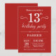 Convite de aniversário de 13 com fundo vermelho. Aniversário de criança. Convidar Menino ou Menina. 13 15 16º 18º 20 21rua 30 40º 50º 60º 80 de 70 100º, qualquer idade. Para mais personalização, clique no botão "Personalizar" e use nossa ferramenta de design para modificar este modelo.