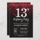 Convite de aniversário de 13 com luzes de cordas vermelhas com fundo brilhante vermelho. Aniversário Vermelho. Aniversário de crianças. Convidar Menino ou Menina. 13 15 16º 18º 20 21rua 30 40º 50º 60º 80 de 70 100º, qualquer idade. Para mais personalização, clique no botão "Personalizar" e use nossa ferramenta de design para modificar este modelo.