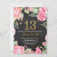 Convite de Aniversário para 13 Floral para Mulheres. Flor Botânica De Aquarela Dourada Glitter. Fundo Chalkboard. Flores Florais De Pêonias Rosa. Crianças, Lady Birthday. Para mais personalização, clique no botão "Personalizar" e use nossa ferramenta de design para modificar este modelo.