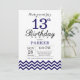 13o Convite do aniversário com azuis marinhos Chevron. Preto e branco. Aniversário de criança. O menino ou a menina Bday convidam. Para uma personalização mais adicional, clique por favor "personalizam-no" botão e usam-nos nossa ferramenta de design para alterar este modelo.