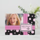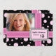 13o Convites feitos sob encomenda da foto da festa de aniversário com o divertimento e teste padrão cor-de-rosa e preto brilhante dern do papel de embrulho das bolinhas, inteiramente customizáveis com seus detalhes da foto e da festa de aniversário, um convite original e à moda para a festa de aniversário de uma menina.