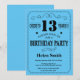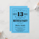 13o Tipografia preta e azul do convite do aniversário. Fundo preto e azul. Aniversário de criança. Aniversário masculino dos homens ou das mulheres. Miúdos menino ou senhora Adolescente Adolescente Bday Convite da menina. 13o 15o 16o 18o 20o 2ø 30o 40th 50th 60th 90 100th do 80 do 70. Alguma idade. Para uma personalização mais adicional, clique por favor "personalizam-no" botão e usam-nos nossa ferramenta de design para alterar este modelo.