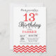 13o Convite do aniversário com Chevron vermelho. Preto e branco. Aniversário de criança. O menino ou a menina Bday convidam. Para uma personalização mais adicional, clique por favor "personalizam-no" botão e usam-nos nossa ferramenta de design para alterar este modelo.