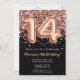 14 Aniversário Convite de Rosa Negro Glitter Doura