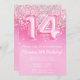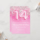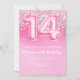 14 cor-de-rosa Aniversário Convite Girly Pink Glitter convite de aniversário para uma menina de 14 anos com escrevendo moderno de escrita e balões de folha divertida.