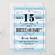 15 Aniversário Convite Blue e White Stripes