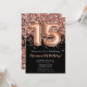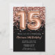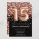 15 Aniversário Convite de Rosa Negro Glitter Doura