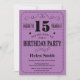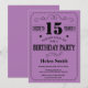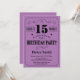 15 Aniversário Convite à Tipografia Preta e Roxa. Fundo preto e roxo. Aniversário de criança. Homens ou Mulheres Aniversário. Menino ou Menina Menina Menina Adolescente Convidam. 13 15 de 16º 18º 20 21rua 30 de 40º 50º 80 de 60º 70 de 100º. Qualquer Idade. Para mais personalização, clique no botão "Personalizar" e use nossa ferramenta de design para modificar este modelo.