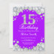 15 Aniversário do Convite Roxo e Diamante de Prata