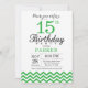 Convite de aniversário de 15 com Green Chevron. Preto e Branco. Aniversário de criança. Convidar Menino ou Menina. Para mais personalização, clique no botão "Personalizar" e use nossa ferramenta de design para modificar este modelo.