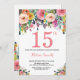 Convite de Aniversário para 15 Floral. Flor Floral de Aquarela. Rosa, Amarelo, Laranja, Flor Roxo. Aniversário de criança. Menina ou Menino Convidam. 30 40th 50th 60th 80 de 70 de 100th 13 de 16th 18th 20 21rua de qualquer idade. Para mais personalização, clique no botão "Personalizar" e use nossa ferramenta de design para modificar este modelo.