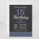 15o Preto e azul do convite do aniversário