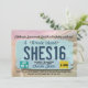 Uma adolescente fazendo 16 anos e conseguindo sua carteira de motorista é um marco para comemorar! Eu criei esta design para capturar a placa de licença do estado individual e colocá-la em cima de um fundo suave que inclui a rua, a estrada e o céu. Esta design resume rapidamente a sua comemoração de aniversário. É o ponto, mas numa design divertida que diz tudo. Sua adolescente está prestes a entrar na estrada!