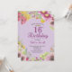 16.º Aniversário Floral Convite para Mulheres Roxo