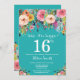 O 16º Aniversário do Teal Floral Surprise 16º Convite para Garota. Flor Floral de Água. Fundo do Teal Aqua Turquoise. Rosa, Amarelo, Laranja, Flor Roxo. Aniversário Adulto. 13 15 16º 18º 20 21 rua 30 40º 50º 80 de 60º 70 de 100º, qualquer idade. Para mais personalização, clique no botão "Personalizar" e use a ferramenta design para modificar este modelo.