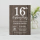 16.º Convite de Aniversário Rustic