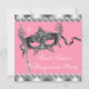 Calçados de salto alto, diamantes e máscara cor-de-rosa, dezesseis convites de aniversário. Esta bela cinza prateada e convite de festas cor-de-rosa é facilmente personalizada para o seu evento, simplesmente escolhendo o botão "Personalizar!" para começar a adicionar os detalhes do seu evento, estilo da fonte, tamanho da fonte e cor e texto. Observe que todos os adesivos, cartões e designs de convite que você encontrará no Zazzle são gráficos impressos sem joias reais, arcos, levantados, gravados, ou peças ou peças adicionadas.