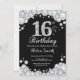 16o Convite do aniversário. Fundo de prata do quadro do diamante do cristal de rocha. A festança elegante do aniversário convida. Preto e branco. Aniversário de criança. Aniversário da menina. Aniversário do menino. Para uma personalização mais adicional, clique por favor "personalizam-no" botão e usam-nos nossa ferramenta de design para alterar este modelo.