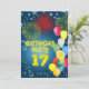 Um divertido 17º convite de aniversário com cores felizes, balões e fogos de artifício. Veja toda a gama de convites e cartões na minha loja.