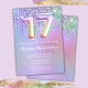 O convite de aniversário 17º brilho púrpura rosa pálido pia pia pia pia pinga o 17º convite de aniversário para uma garota de 17 anos com escrevendo moderno de escrita e balões de folha divertida.