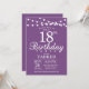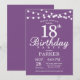 18º Convite de Aniversário com Luzes de Cordas. Fundo Lilac Lavanda Roxo. Mulheres Lady Elegant Convidam. 13 15 16º 18º 20 21 rua 30 40º 50º 80 de 60º 70 de 100º, qualquer idade.