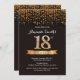 18º Convite de Aniversário. Brilho preto e Dourado. Convite para Festas de aniversário de adultos. Mulheres ou Homens Bday Bash.