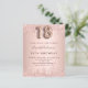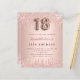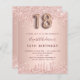 Um convite moderno, na moda e glamouroso para a 18ª festa de aniversário de uma menina. Um fundo metálico rosa dourado falso com um brilho elegante rosa dourado, pintura gota-a-gota. O nome é escrito com um moderno e escuro, rosa dourado, escrito com letra de estilo manuscrito. Personalize e adicione os detalhes da sua festa. O número 18 é escrito com uma fonte de estilo balão, script.