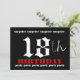 Este ousado design contemporâneo de preto, branco e vermelho com sua ousada carta contemporânea é uma forma divertida de convidar as pessoas para uma surpresa de comemoração de 18 anos. O texto no cartão é totalmente personalizável. Você pode experimentar diferentes tipos de papel clicando na guia "Opções de convite" no canto superior direito.