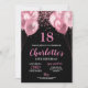 18º Convite de aniversário 18º Convite à apresentação de néon preto cor-de-rosa, Balões